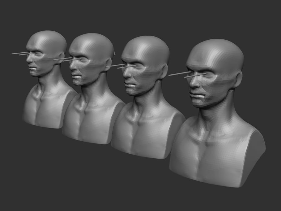 5 captioned videos comprising 70 minutes of sculpting demos, as well as a zProject file containing 4 pre-sized mannequins, eye guides, and starter geometry.